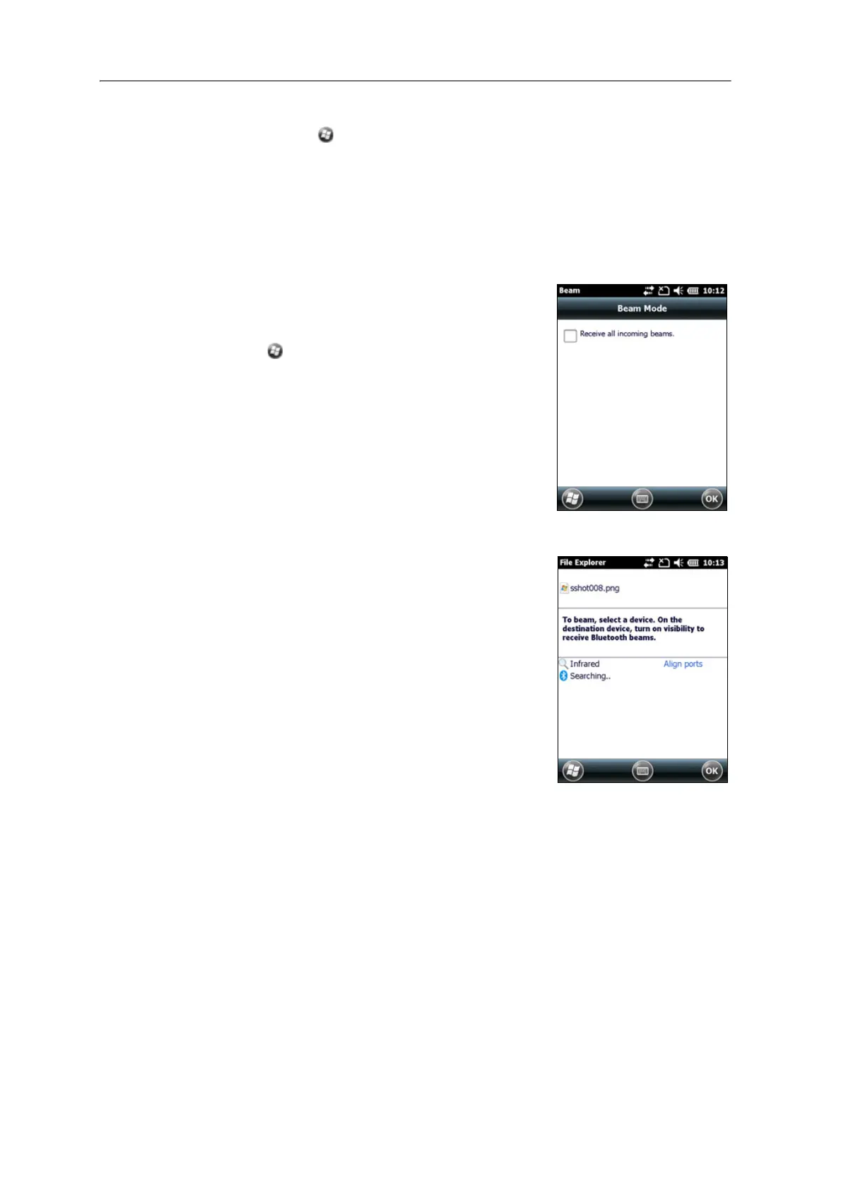 ceive beamed files from another device: