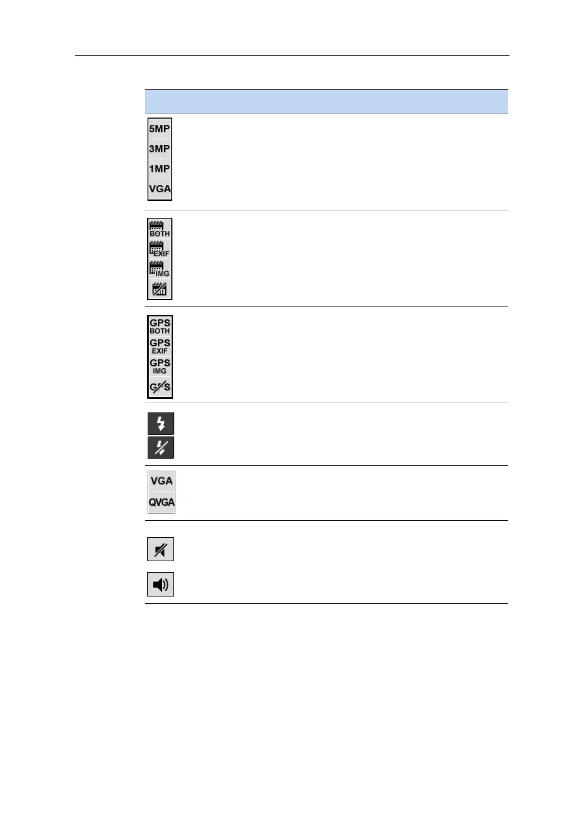 Icon Setting Camera mode /