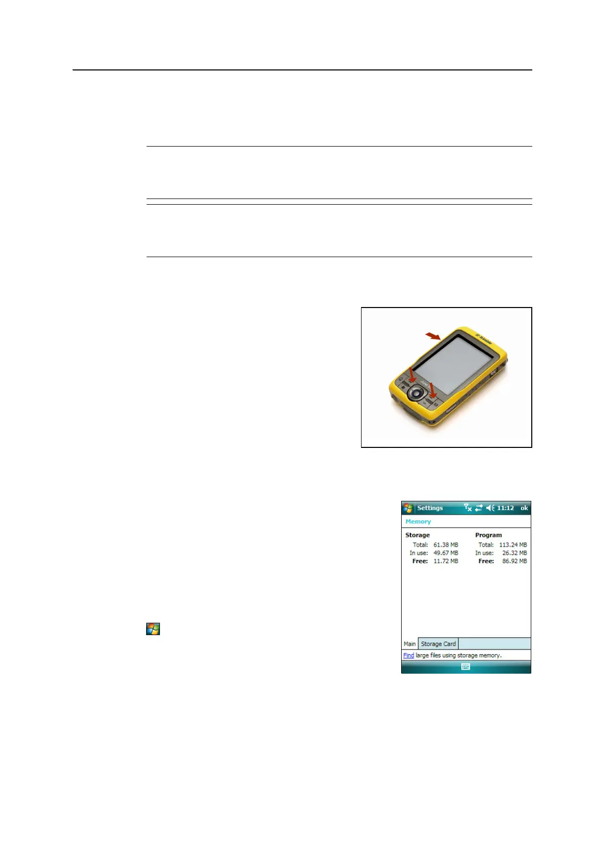 To check the memory capacity on the handheld, tap