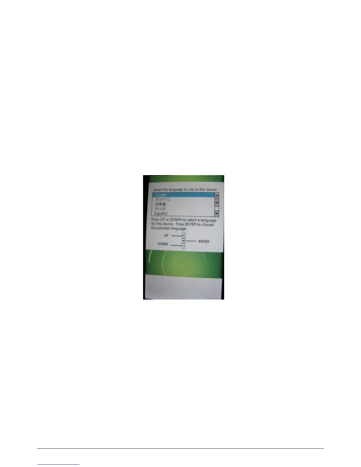 3. Select your preferred language by using the + or - (shown as UP