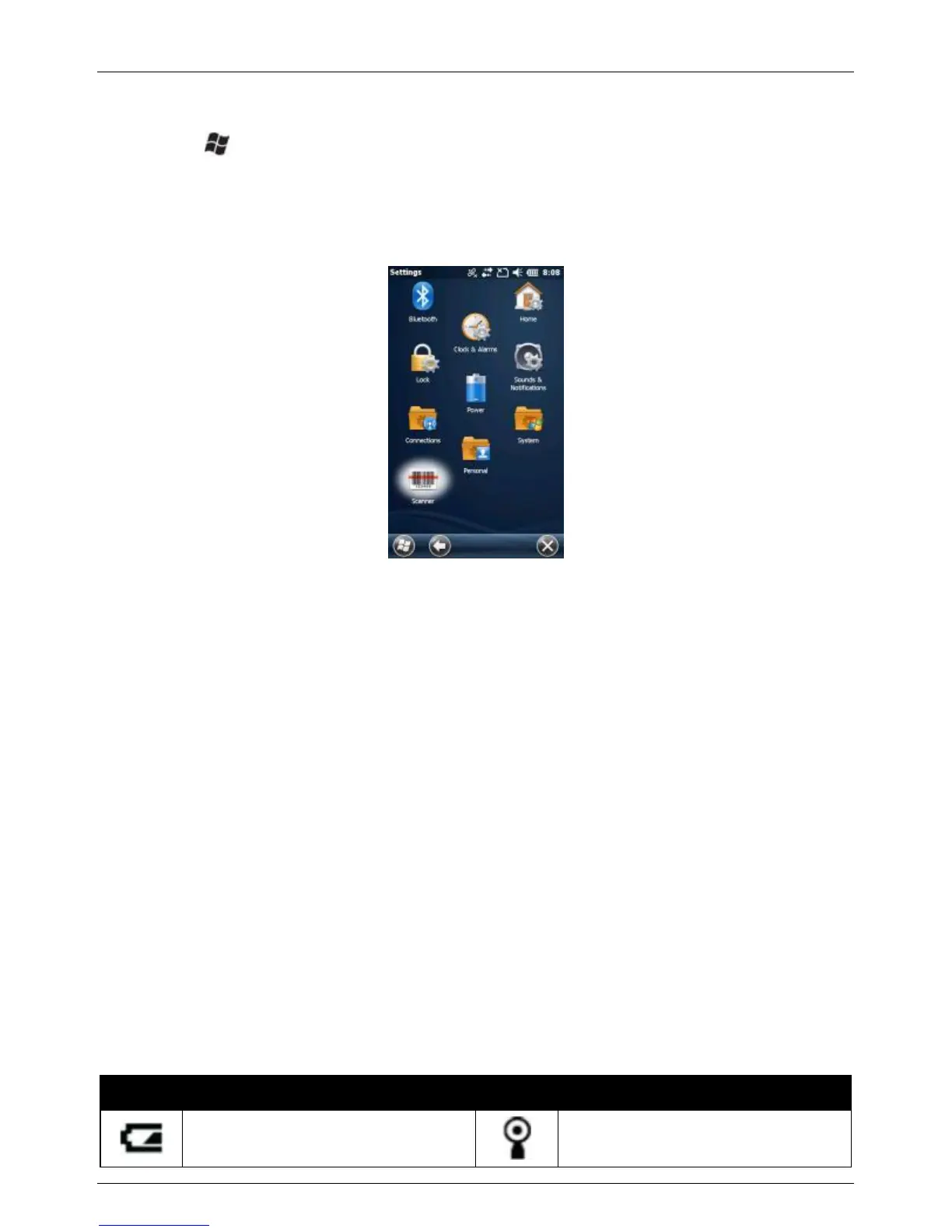 Press the button to access the Start screen where you can easily