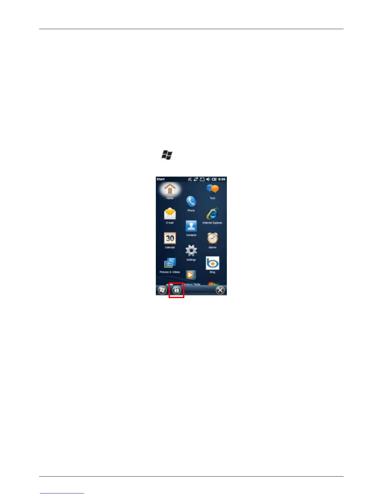 To lock the keypad, press the button to access the Start screen, then
