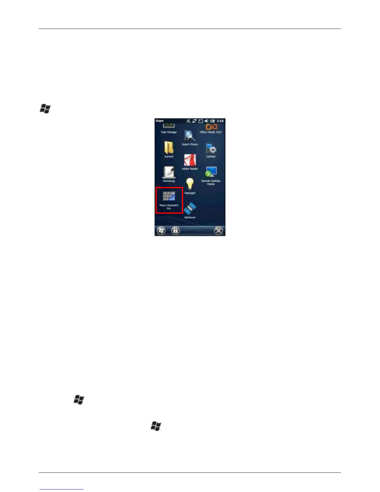 custom S.I.P. application called Resco Keyboard Pro. To configure it, tap