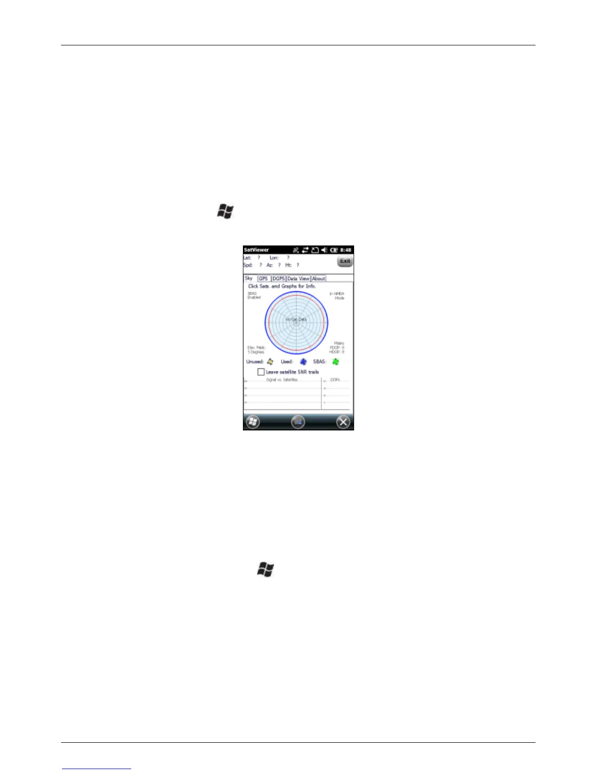 To open SatViewer, tap > SatViewer. To begin monitoring GPS