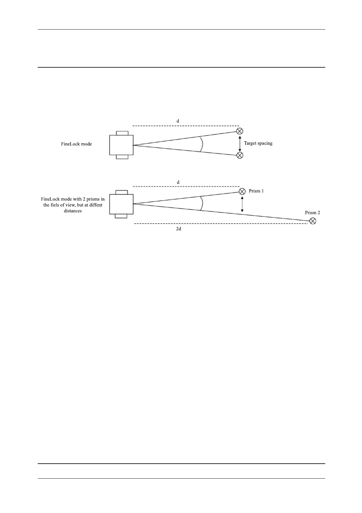 • Minimum spacing between prisms at 2,500 m (8,200 ft) <10,0 m (32 808 ft)
