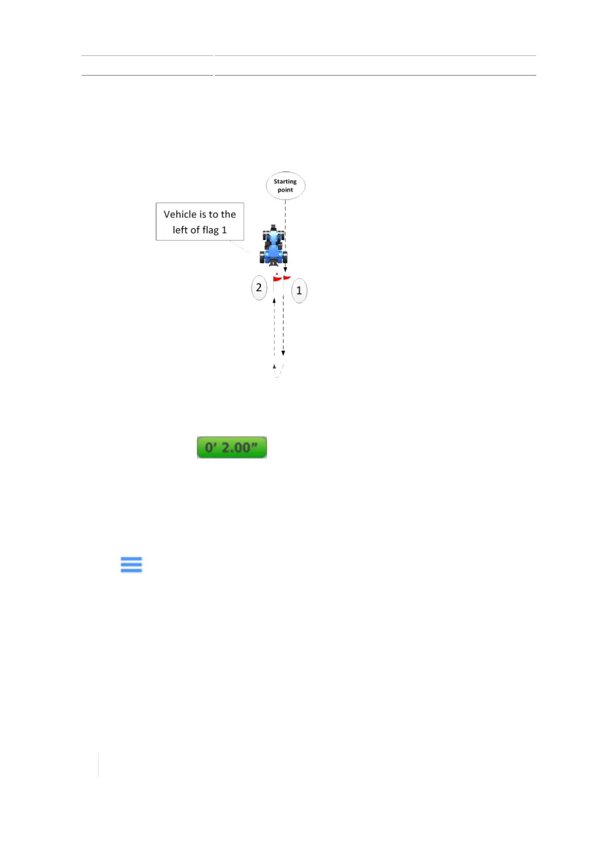 shows the vehicle is to the left of flag 1.