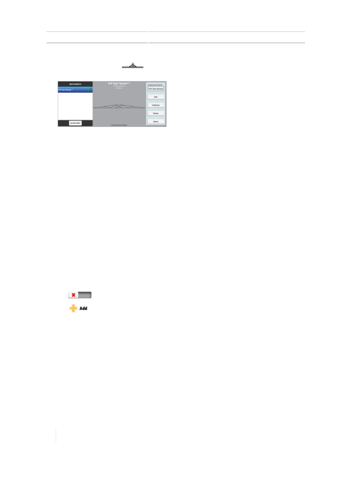 3. At the IMPLEMENT / Type section, tap the type of implement you will be using. Then tap Next