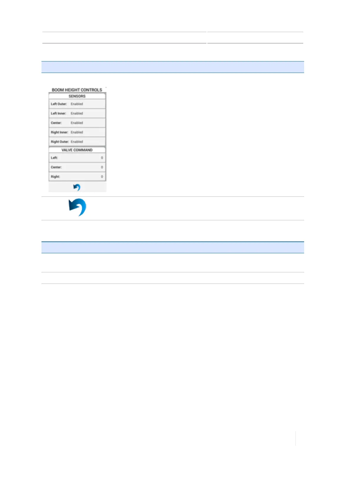 Boom Height Controls Sensors:Indicates all sensors and their status (enabled, disabled).