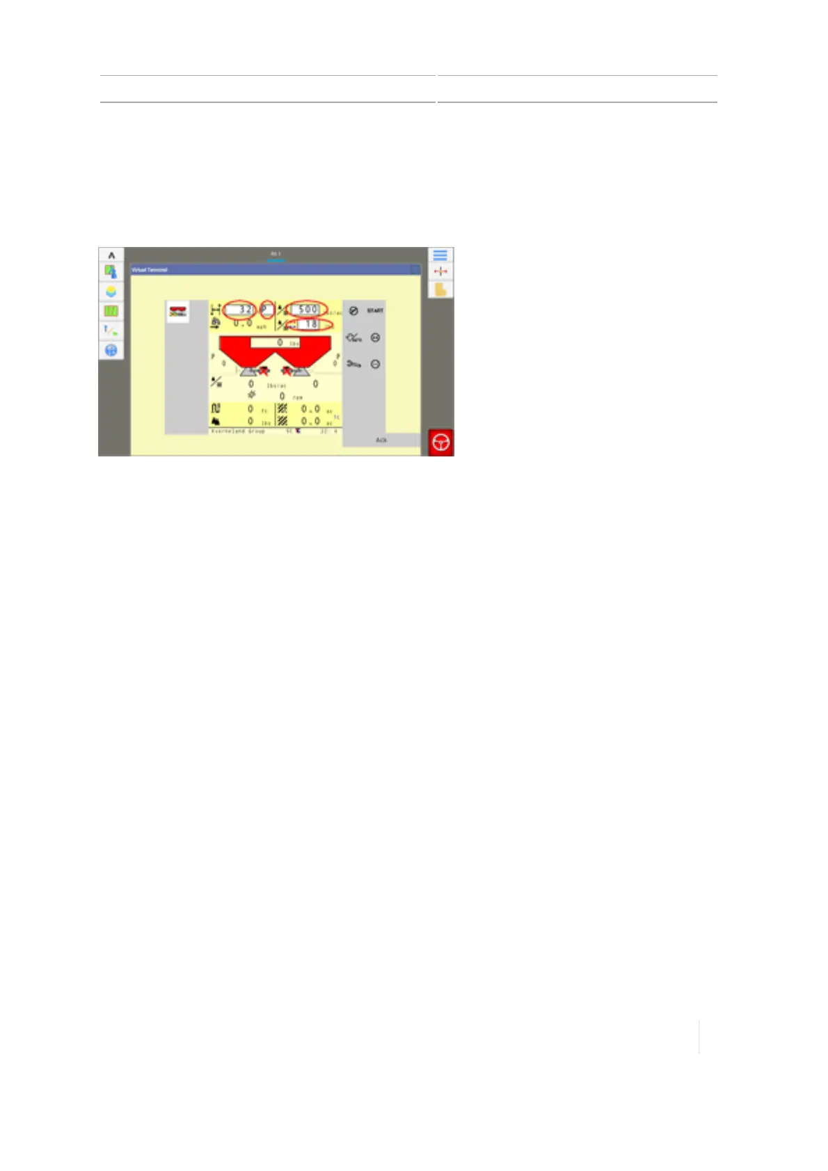 At the full-screen view of Virtual Terminal, you can control the implement using Virtual Terminal.