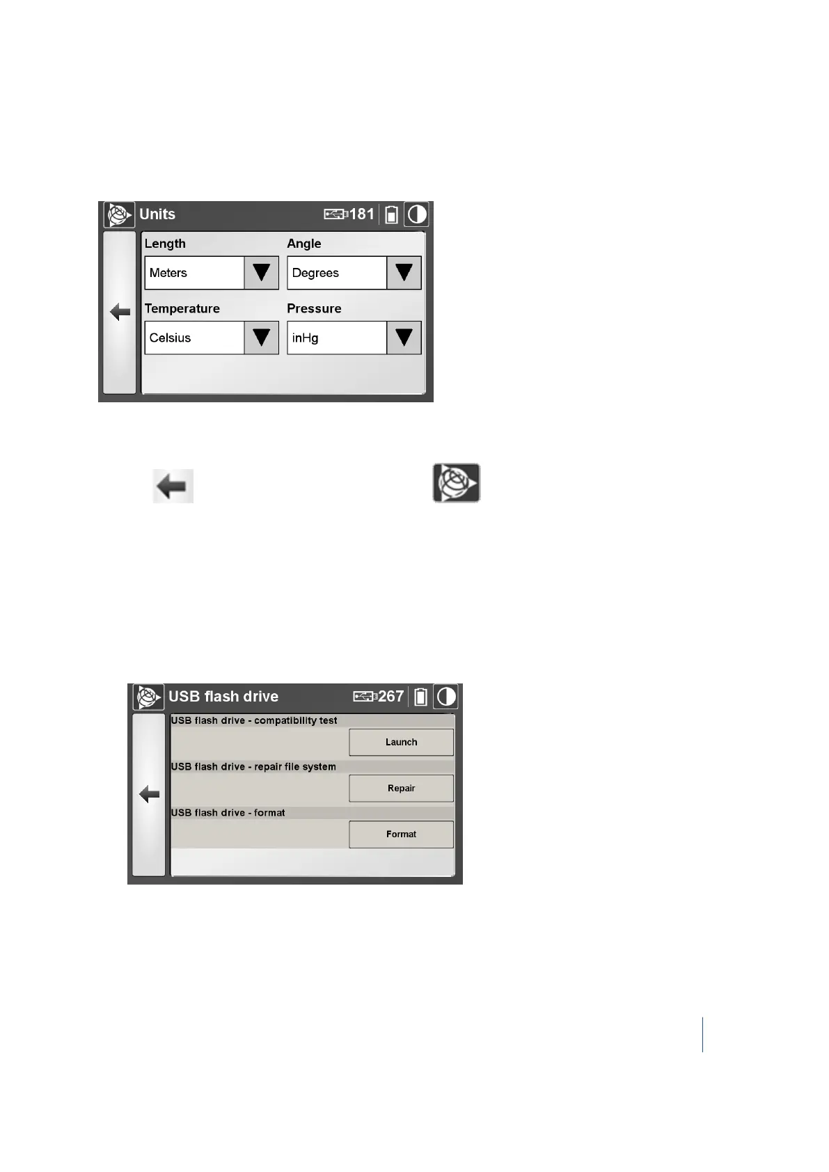 1. Next to the each field, tap the down arrow and select the required units for length, angle,