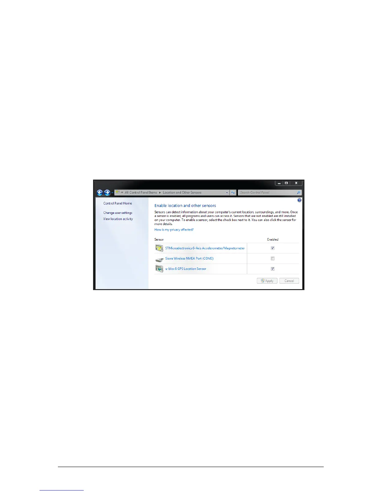 1. Tap Start > Control Panel > Location and Other Sensors.