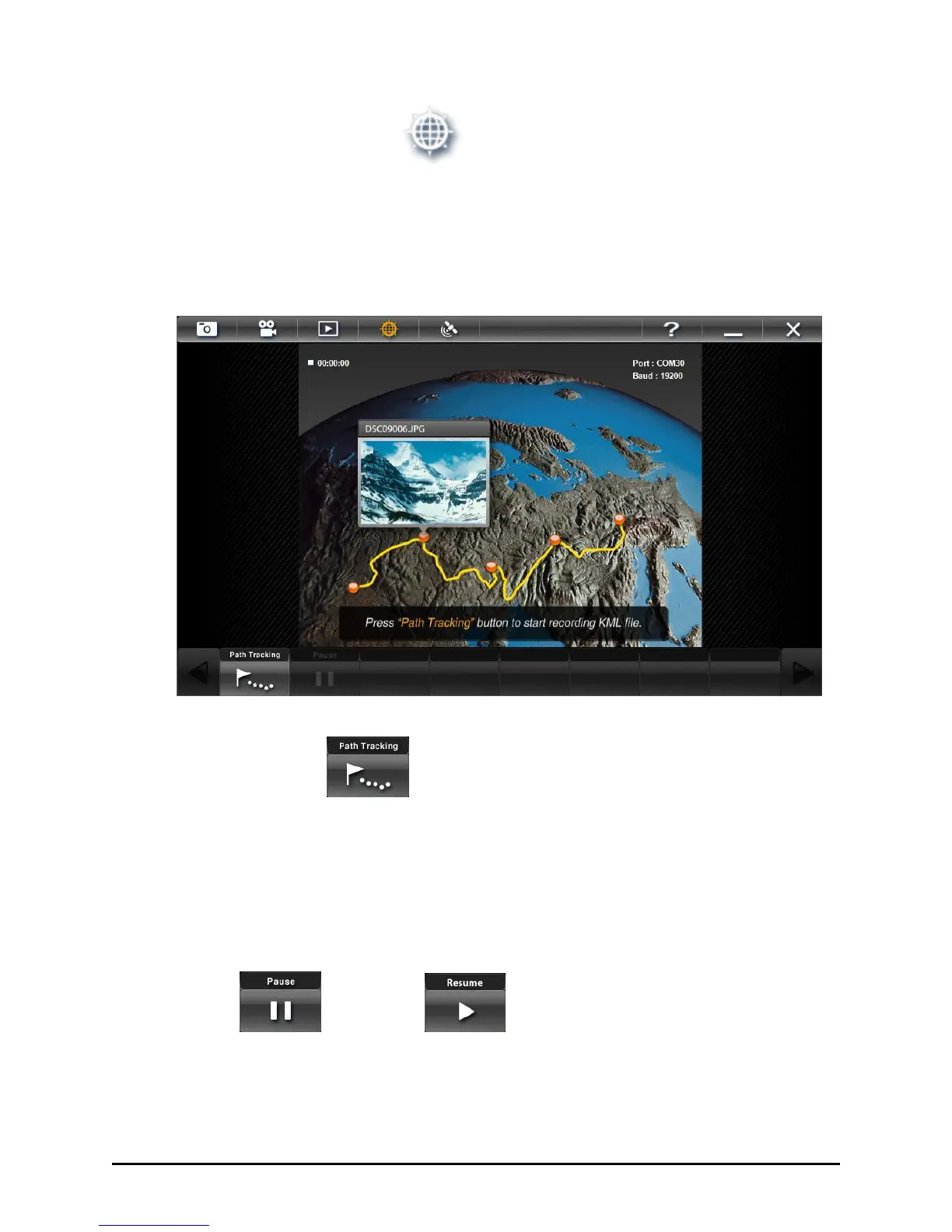 Tap this button to stop tracking and timer count temporarily. Tap the