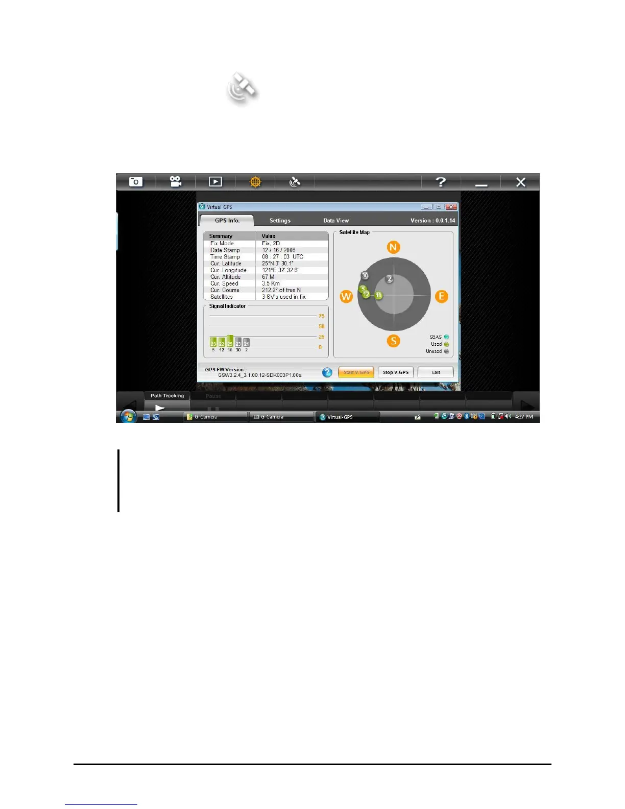 the G-camera application, or you can minimize or exit the Virtual-GPS