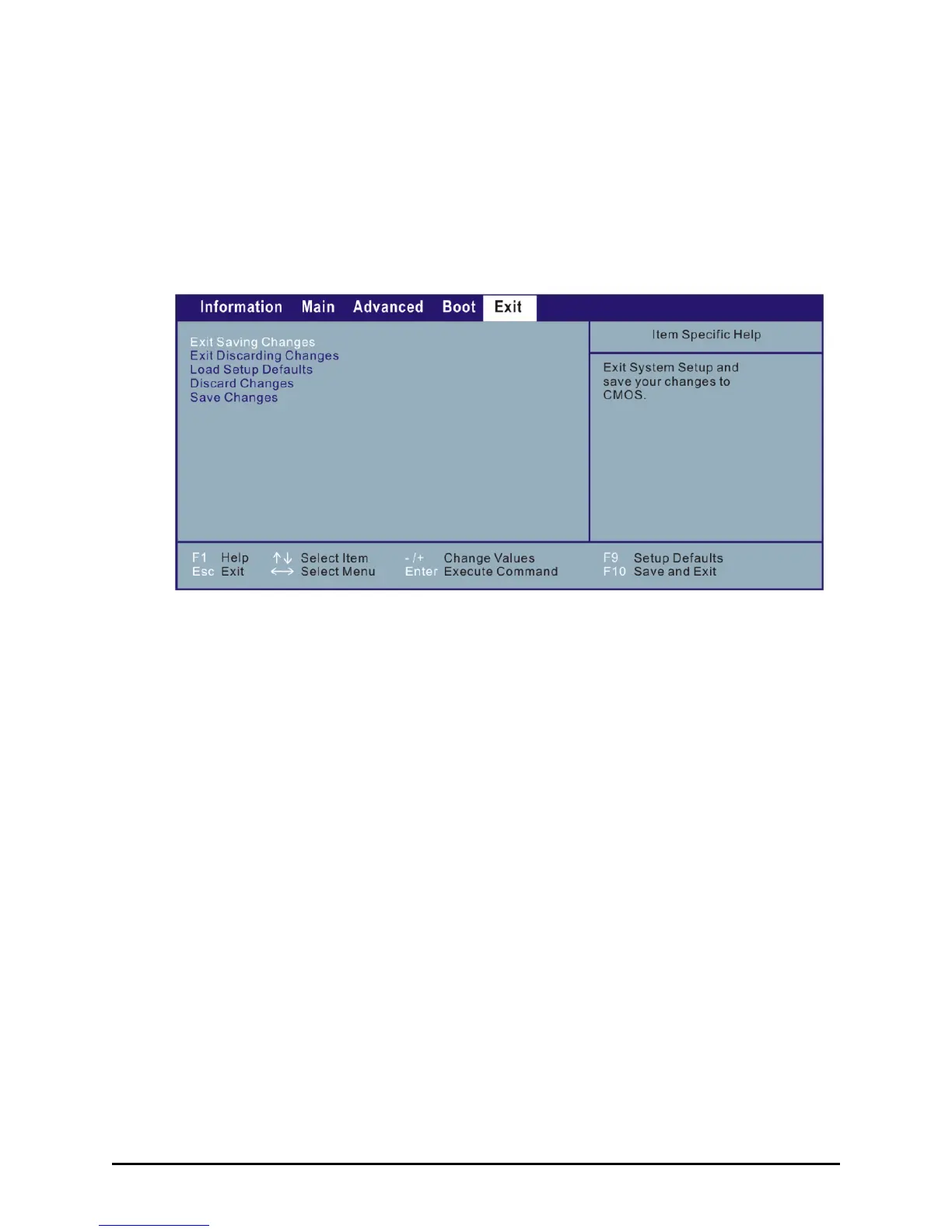 The Exit menu displays ways of exiting BIOS Setup Utility. After you are