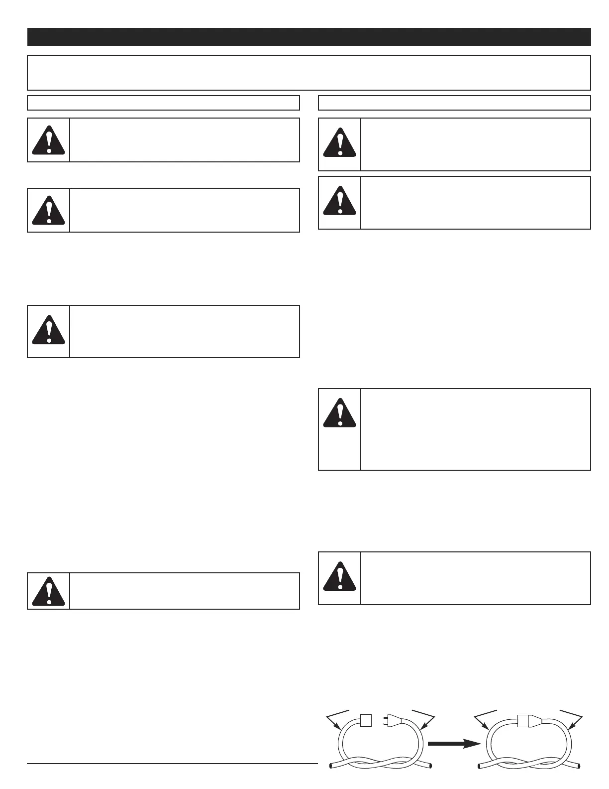 • Inspeccione todos los cables de extensión y la conexión eléctrica de