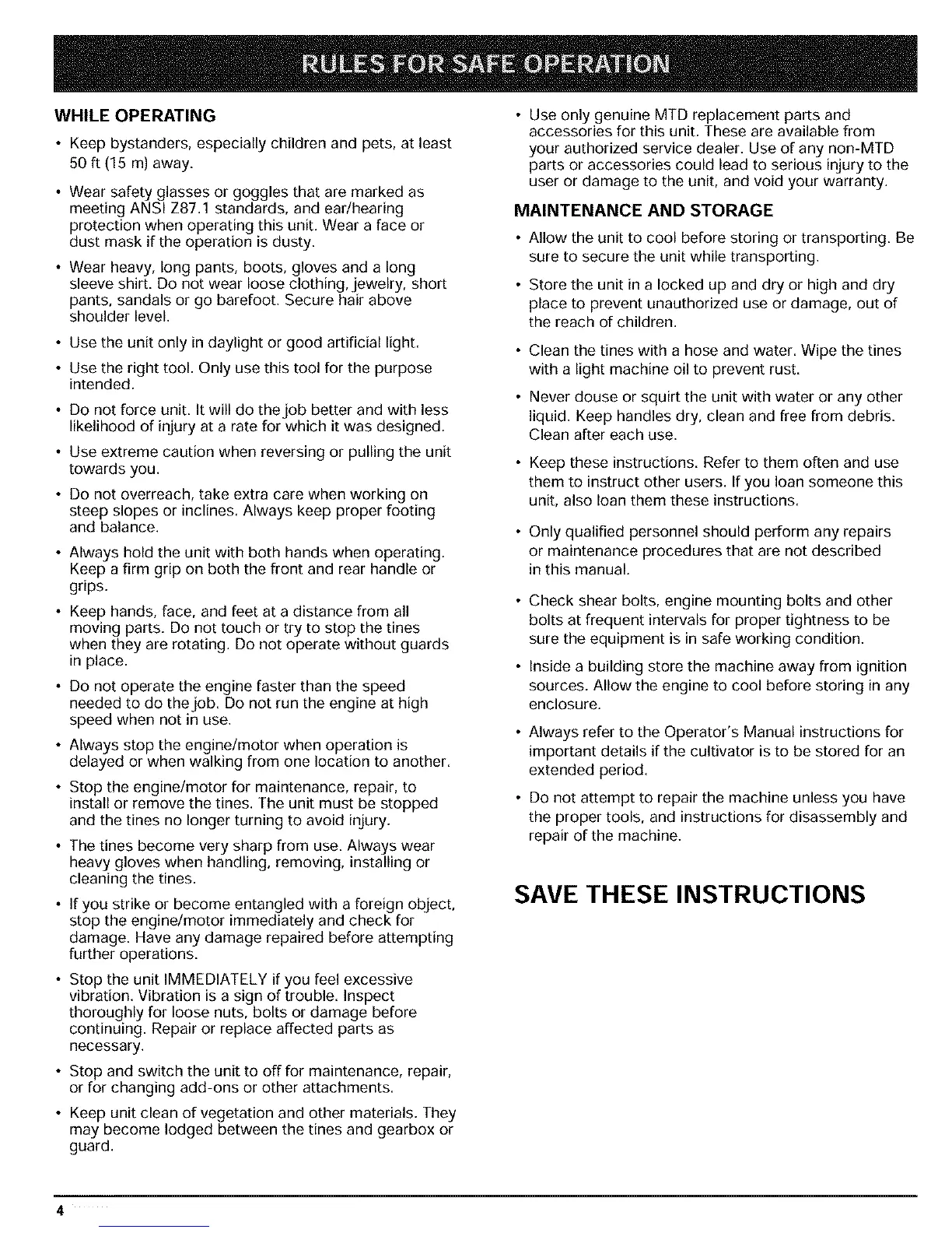 • Use only genuine MTD replacement parts and
