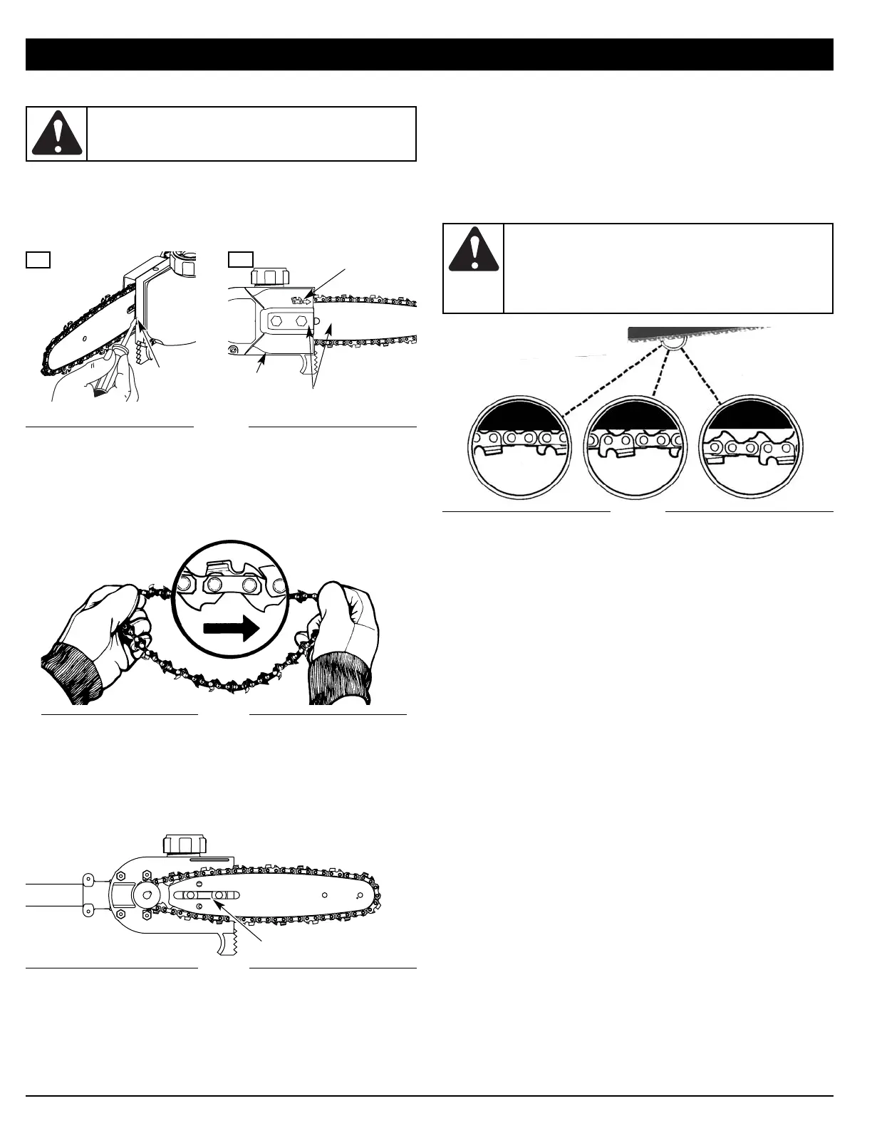tourner ou si elle accroche sur le guide-chaîne ; l’ajuster