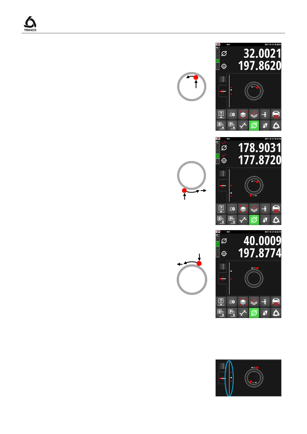 reversal point (1). Move the instrument (or the