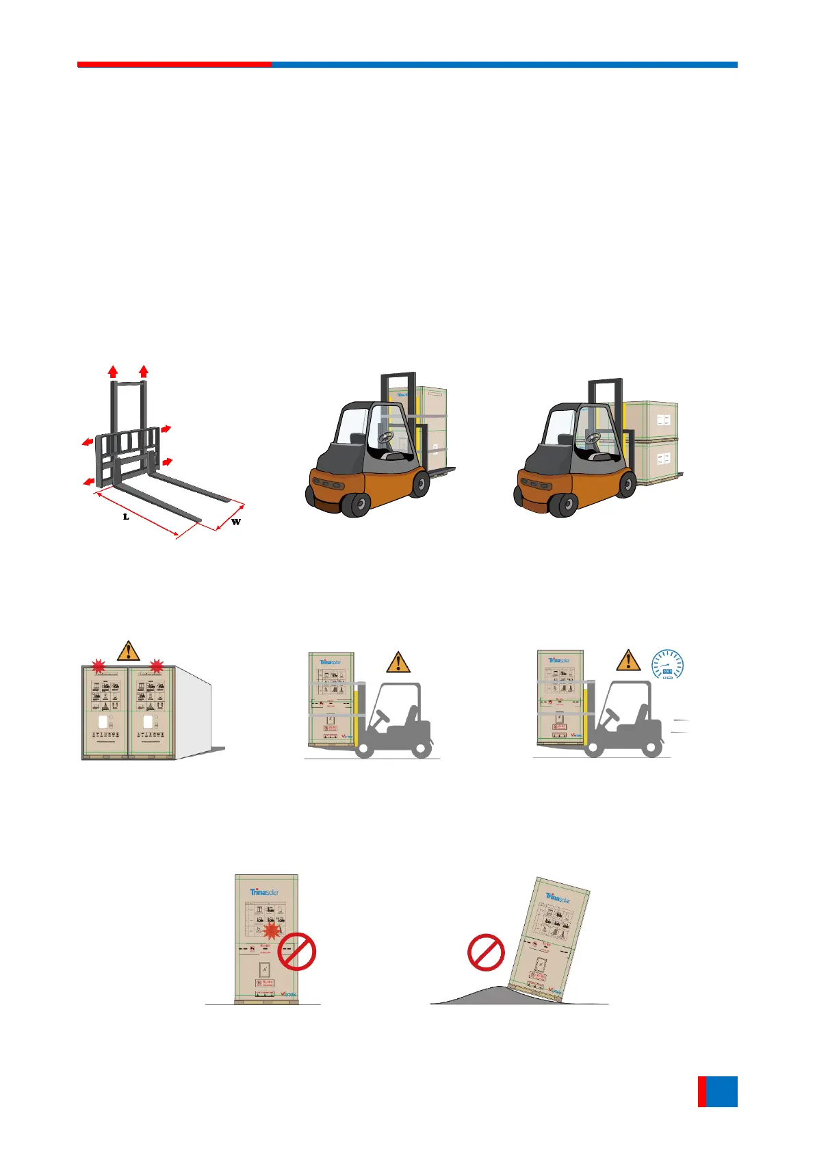 to module weight. The forks should go into the pallet at least 3/4 of the pallet depth during unloading