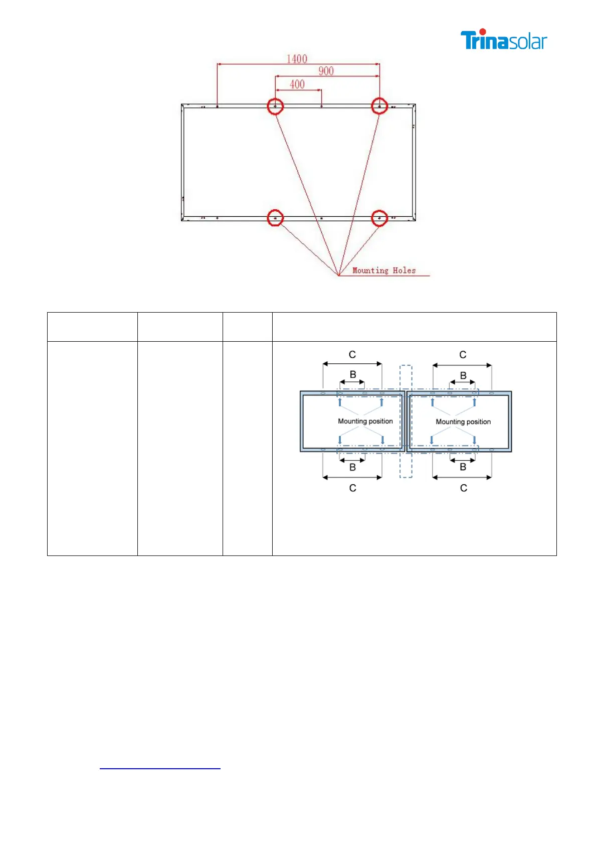 Figure: Mounting holes schematic of the single module for the 2V installation method