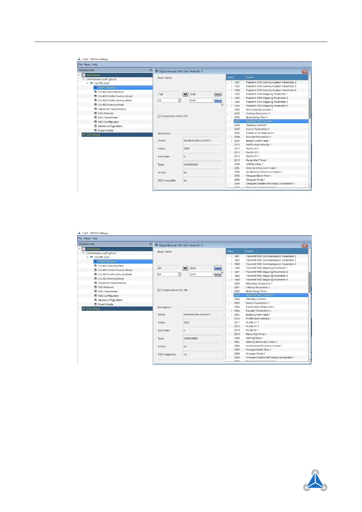 5. The new motor current setting can be confirmed using the Read button.