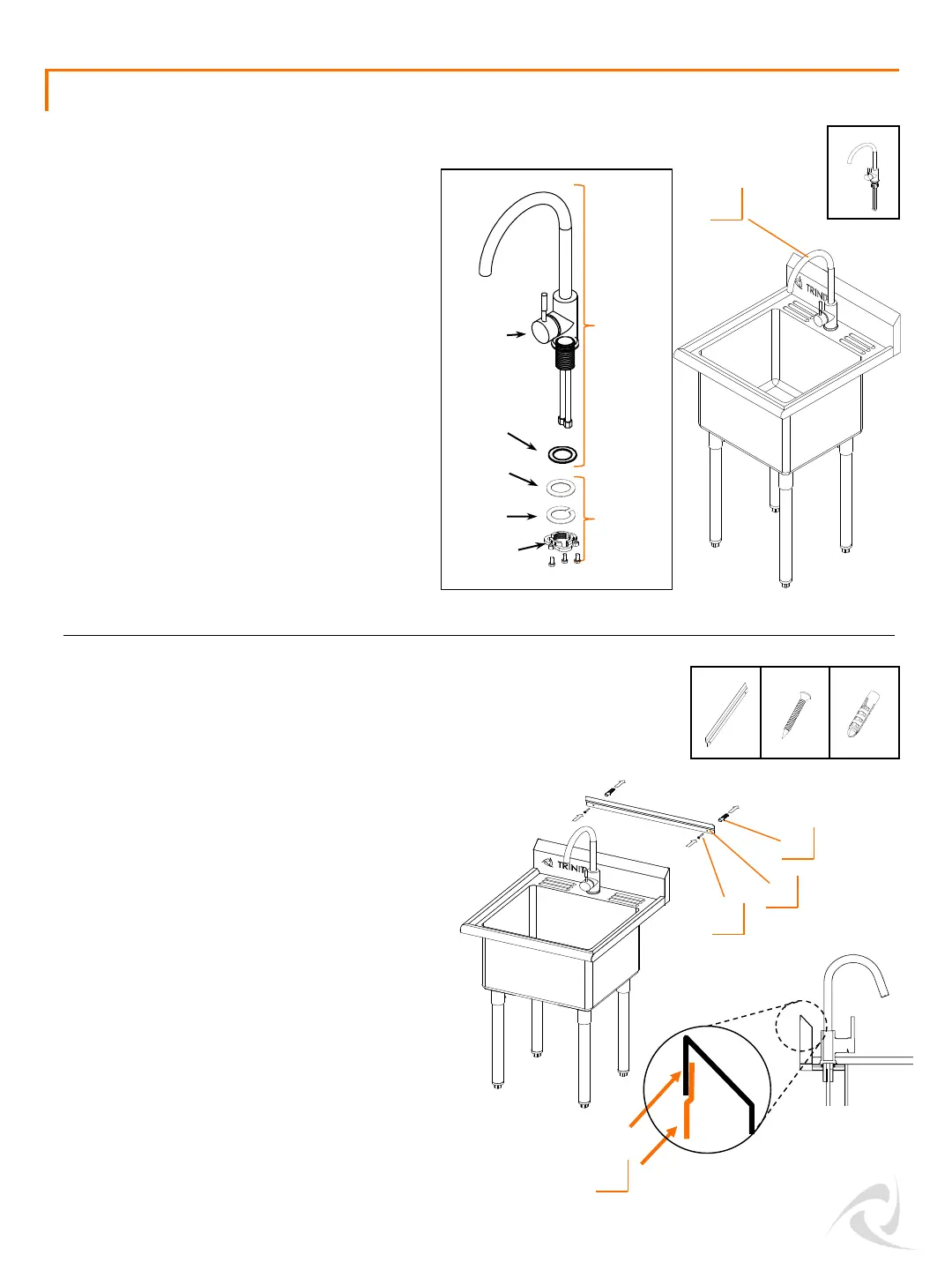 BRACKET (H). Adjust Feet Levelers to ensure sink