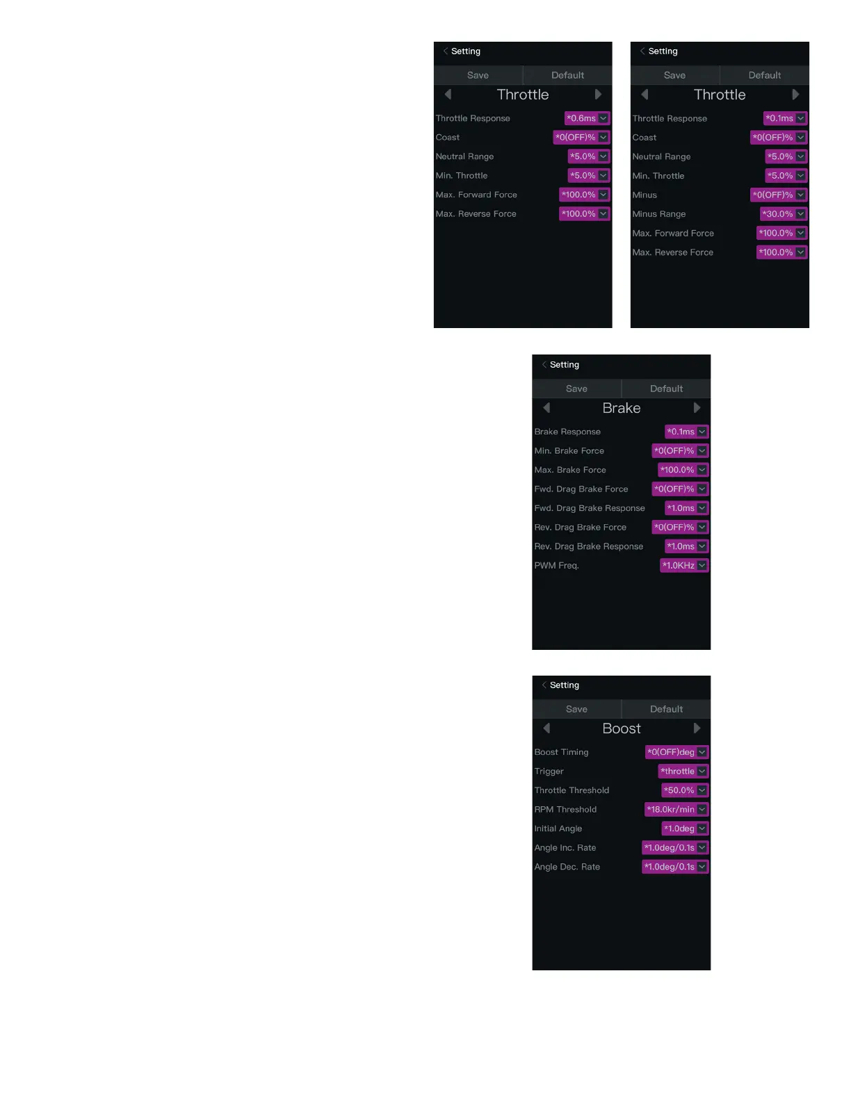 • Anticipo Boost: quando attivo, l’ESC anticipa elettronicamente il timing del