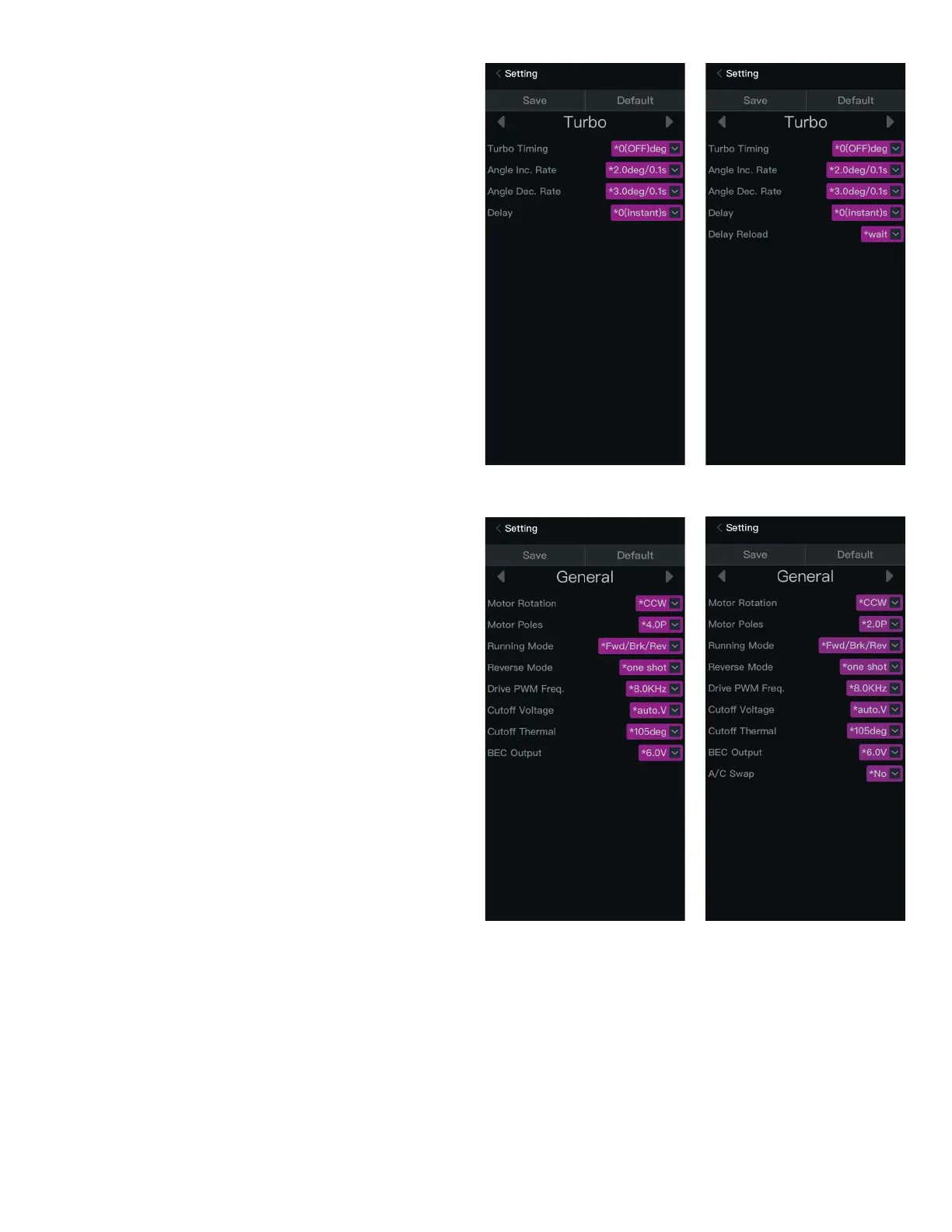 • Ritardo Turbo: il tempo di ritardo della funzione turbo dopo che l’acceleratore