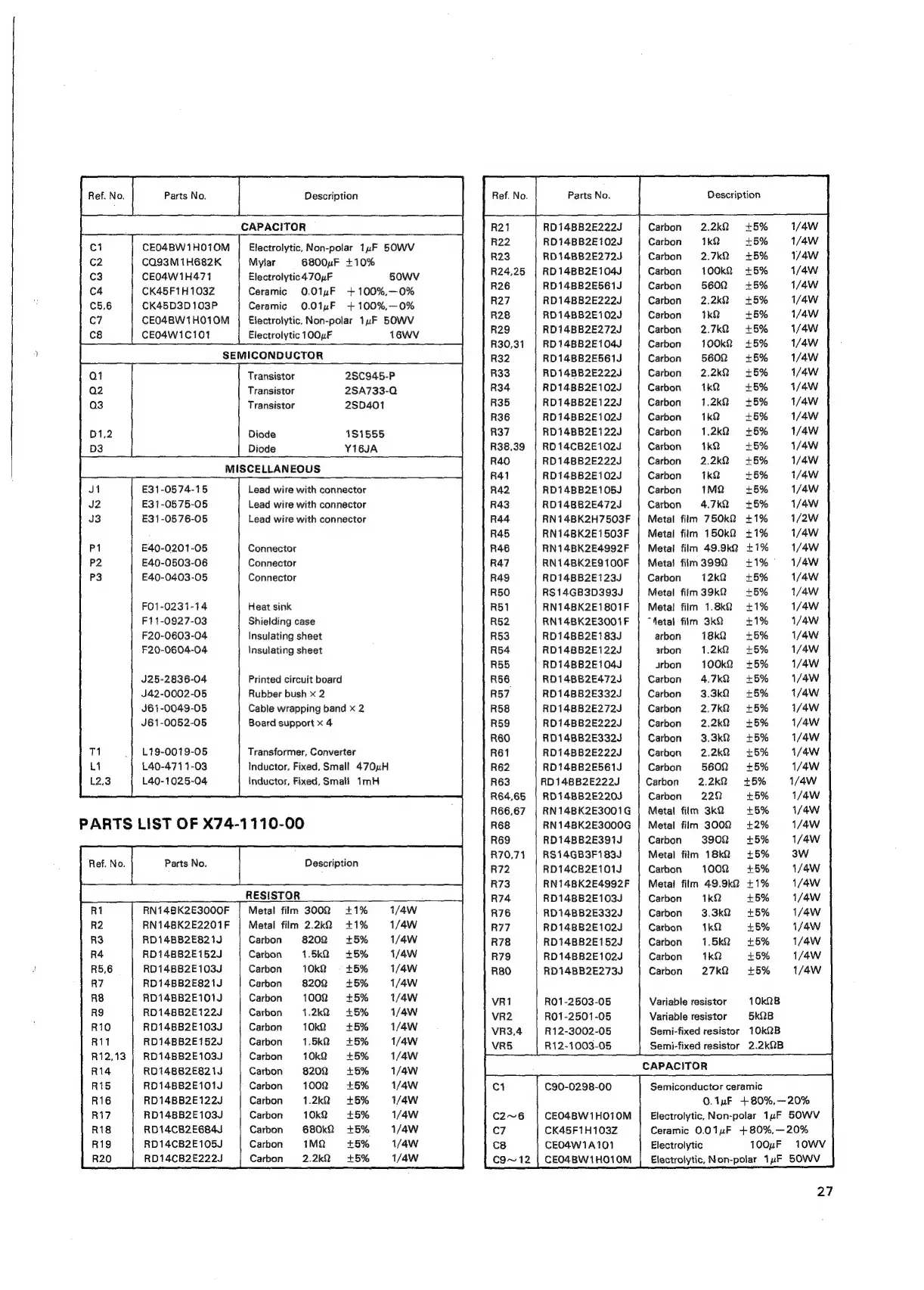 Trio CS-1575 - PARTS LIST OF X74-1110-00