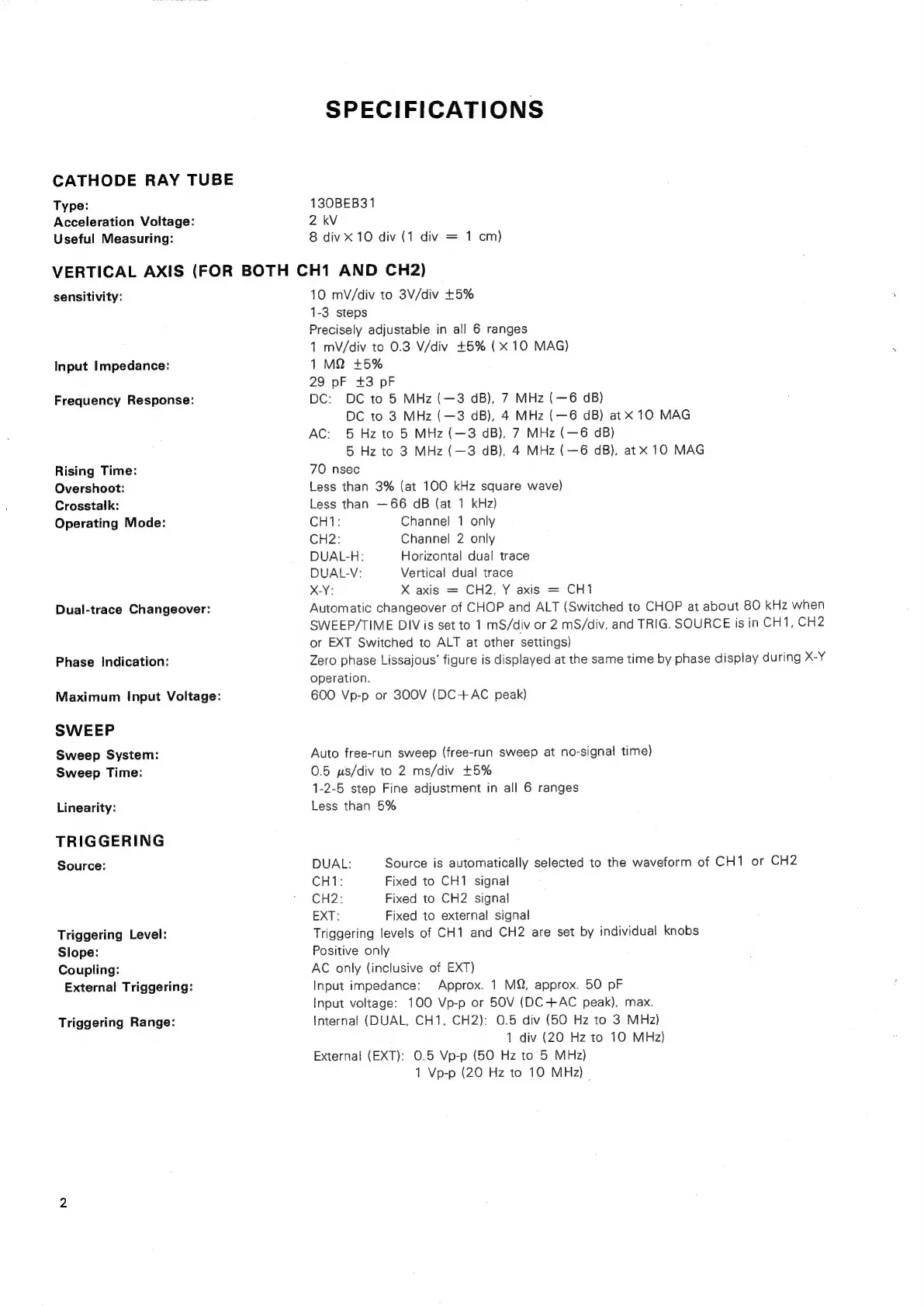 Trio CS-1575 - SPECIFICATIONS