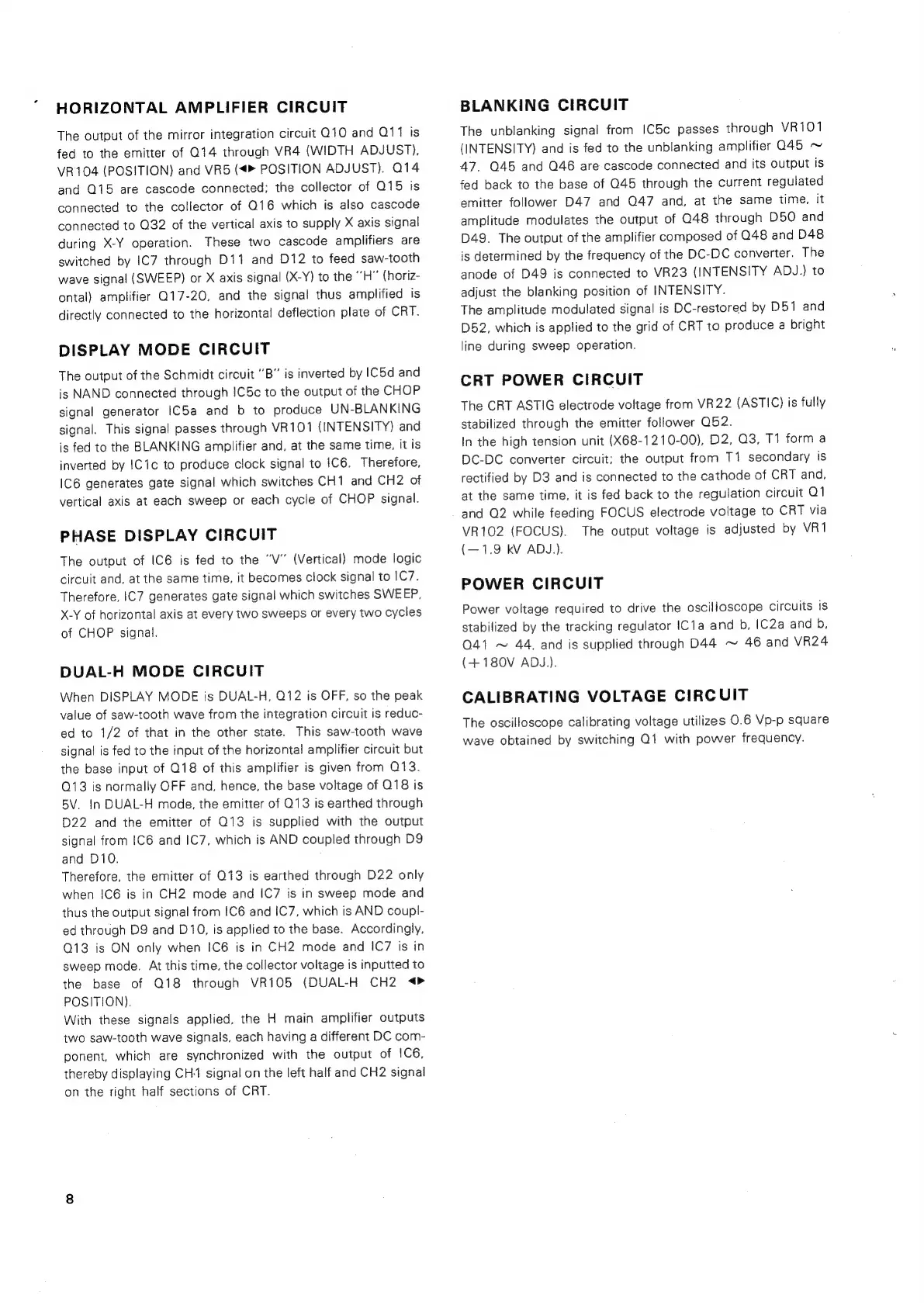 Trio CS-1575 - HORIZONTAL AMPLIFIER, DISPLAY MODE, AND PHASE DISPLAY CIRCUITS; DUAL-H MODE, BLANKING, CRT POWER, POWER, AND CALIBRATING VOLTAGE CIRCUITS