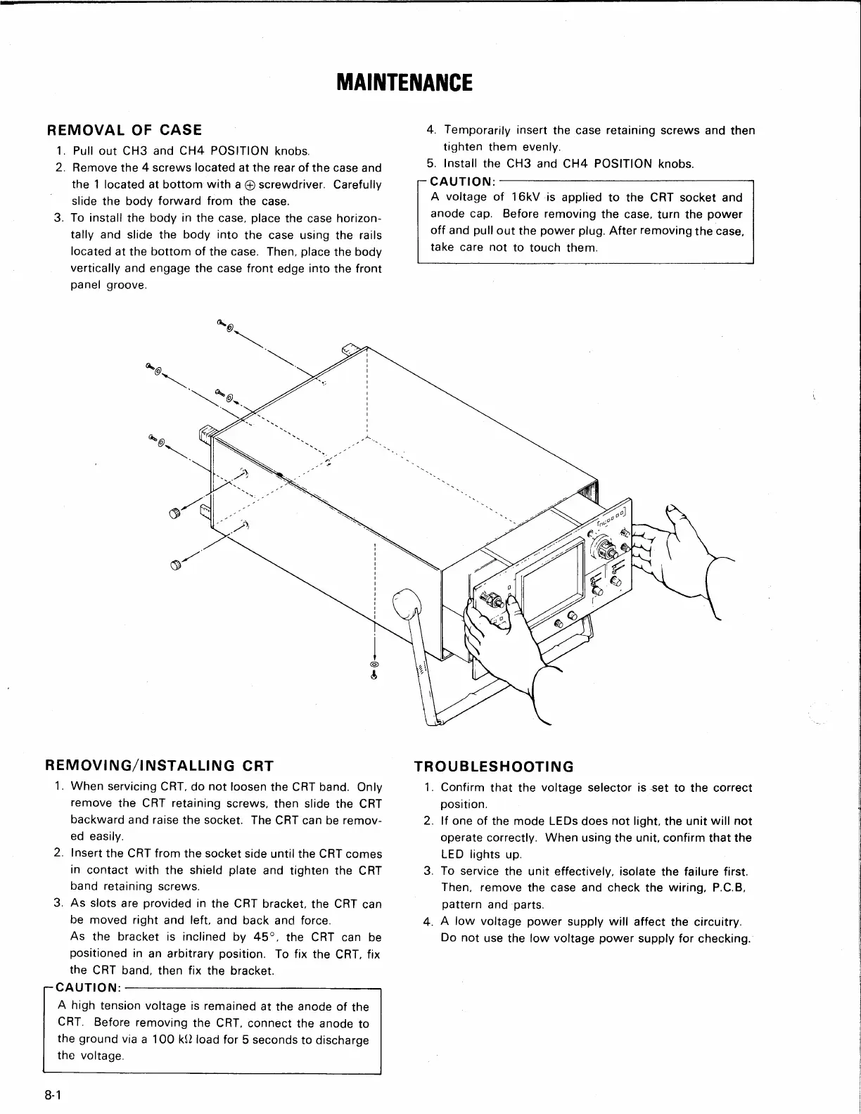 Trio CS-2100A - MAINTENANCE; Case Removal and CRT Servicing; Troubleshooting Common Issues