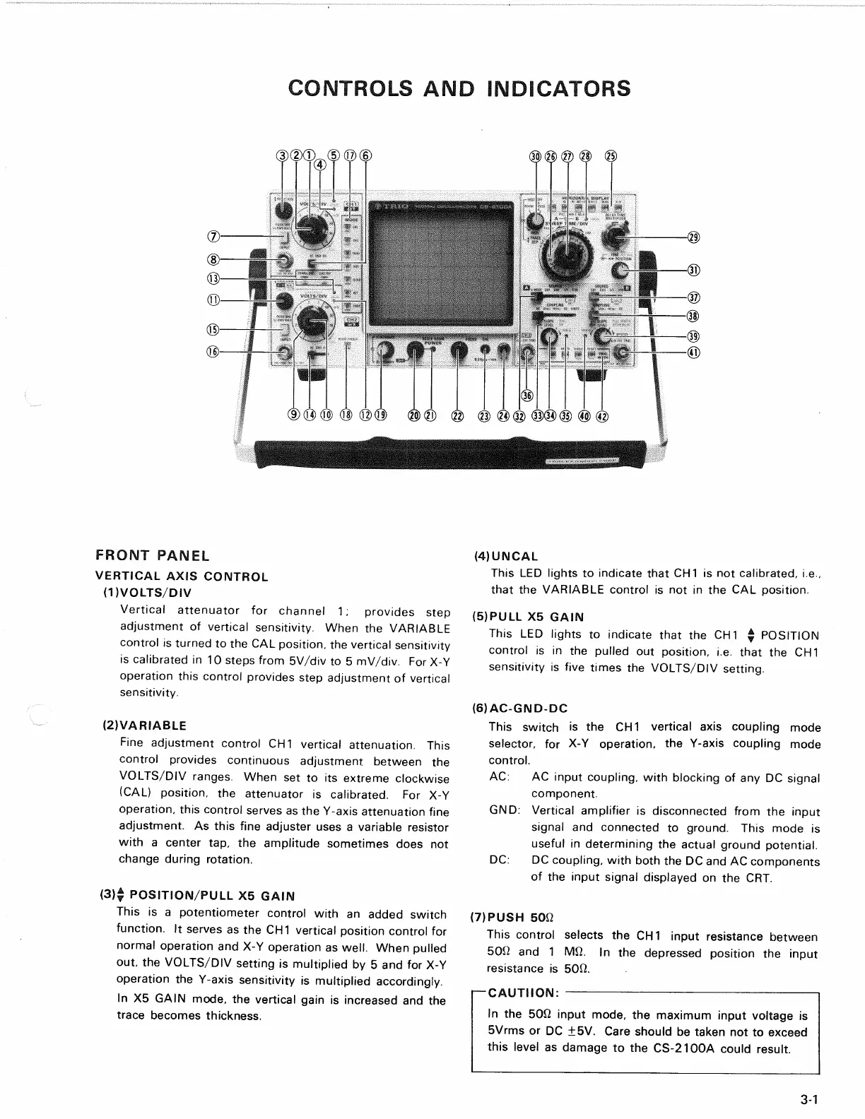 out, the VOLTS/DIV setting is multiplied by 5 and for X-Y