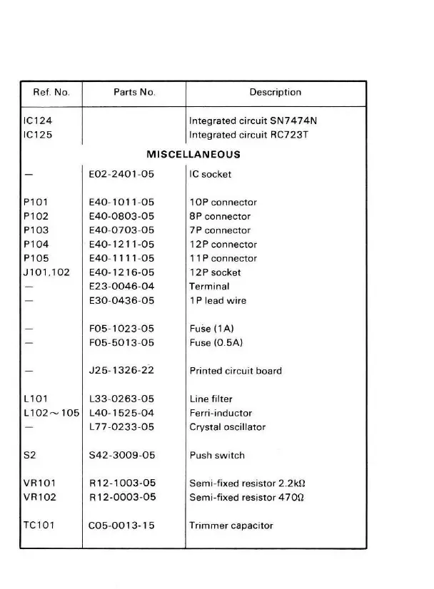 Parts No. Description