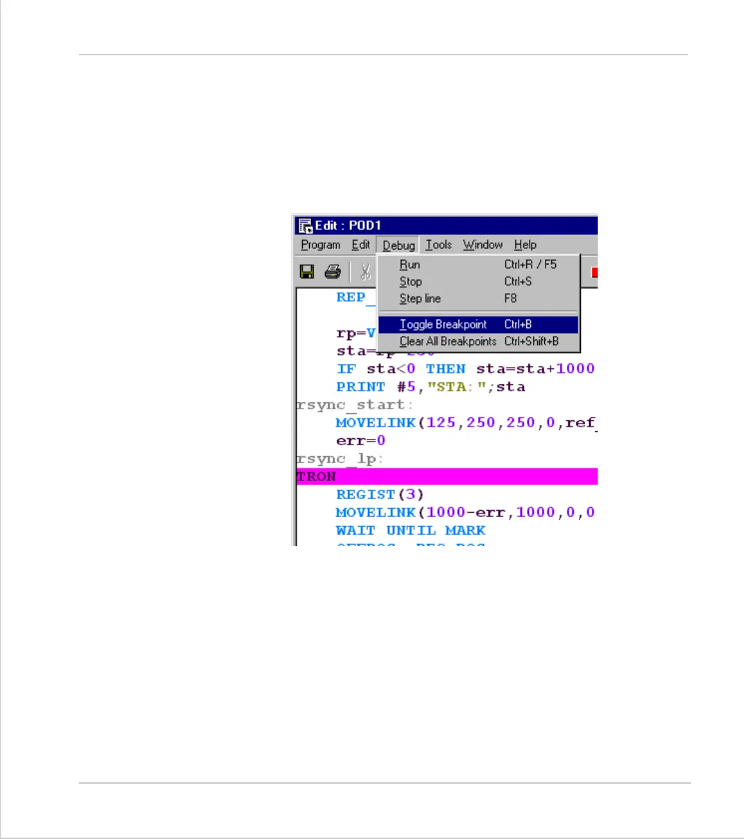 whilst viewing the line in the window. It is also possible to set breakpoints in the