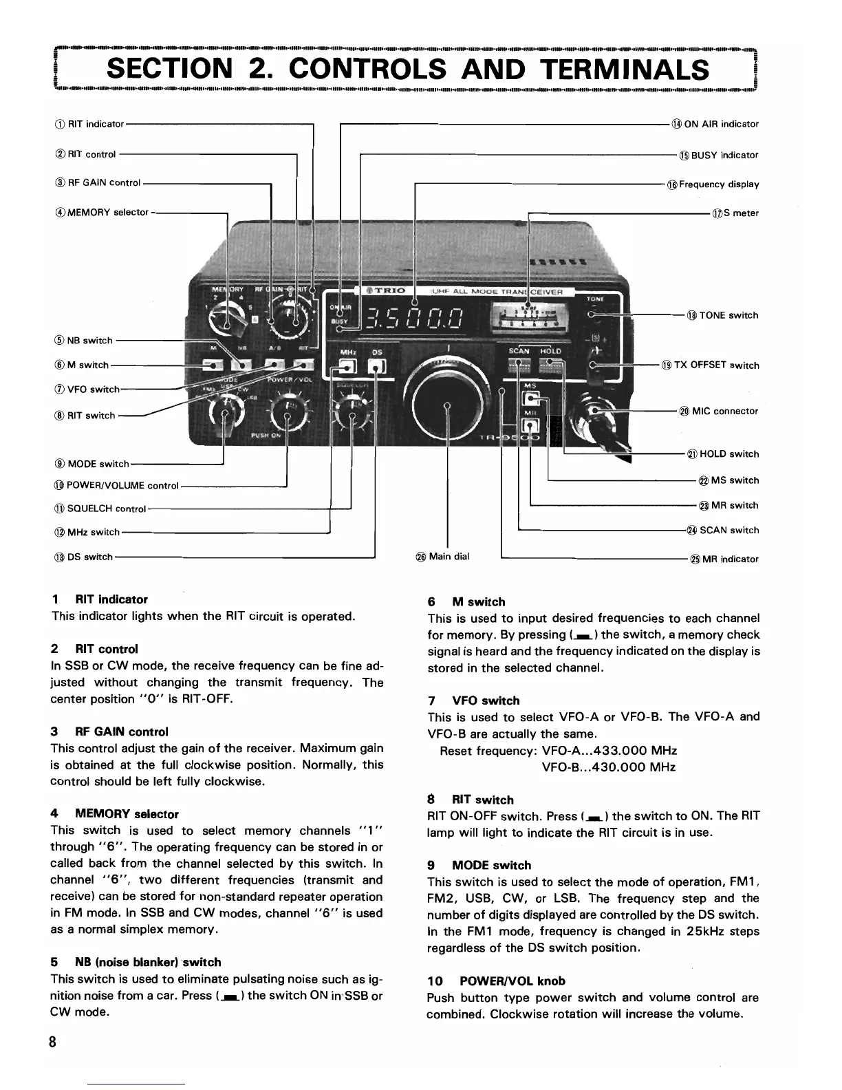 Trio TR- - SECTION 2. CONTROLS AND TERMINALS; Front Panel Controls Overview