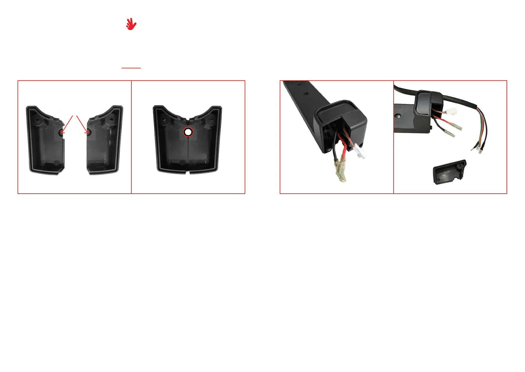 1- Take the 2 halves of the battery dock terminal part. Using a tool, open the hole for the