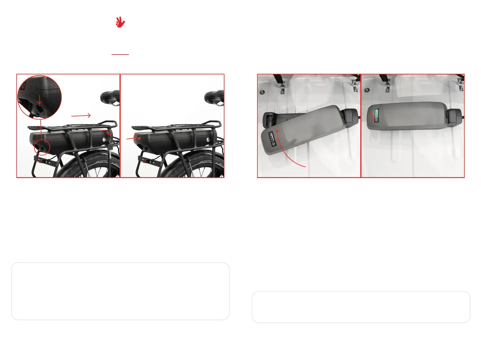 - Insert the battery in the specific space in the rear rack, then rotate the key on the battery