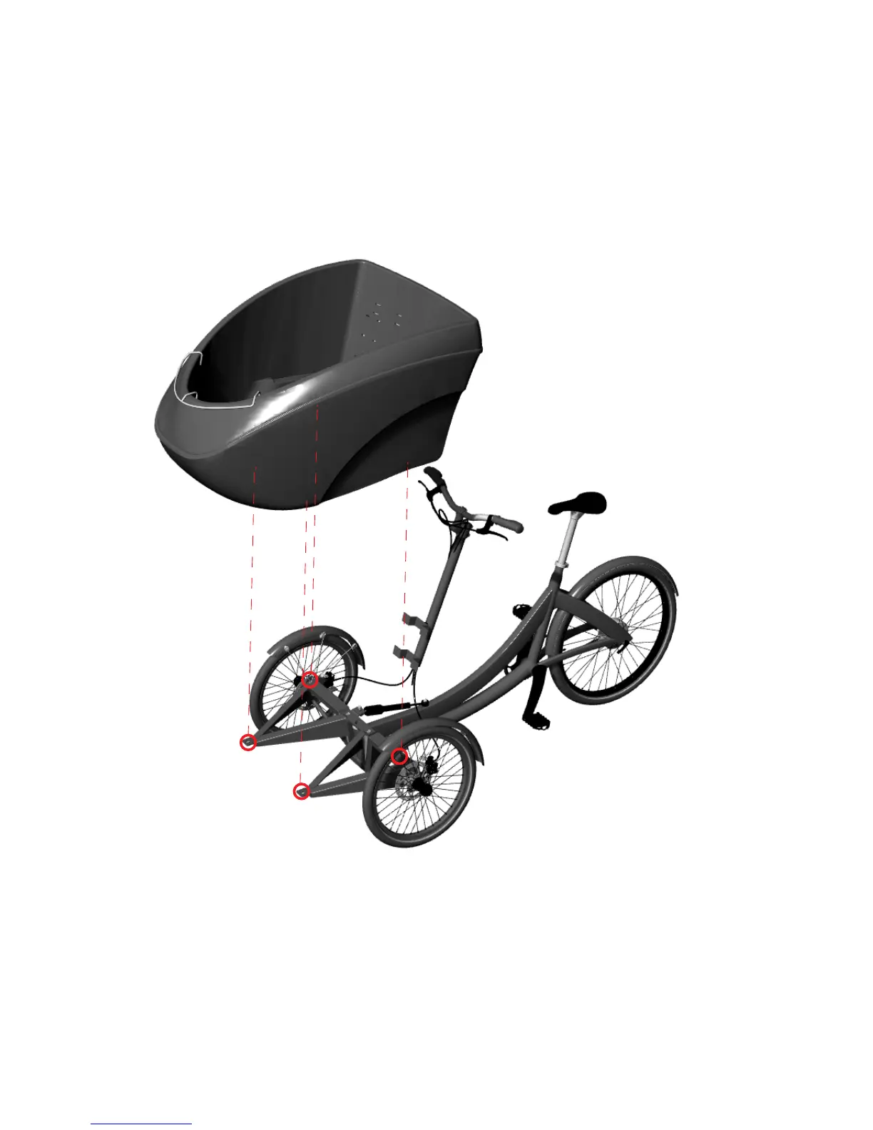 2- Place the box on the front metal frame and place 4 M8 bolts. In case the bike is