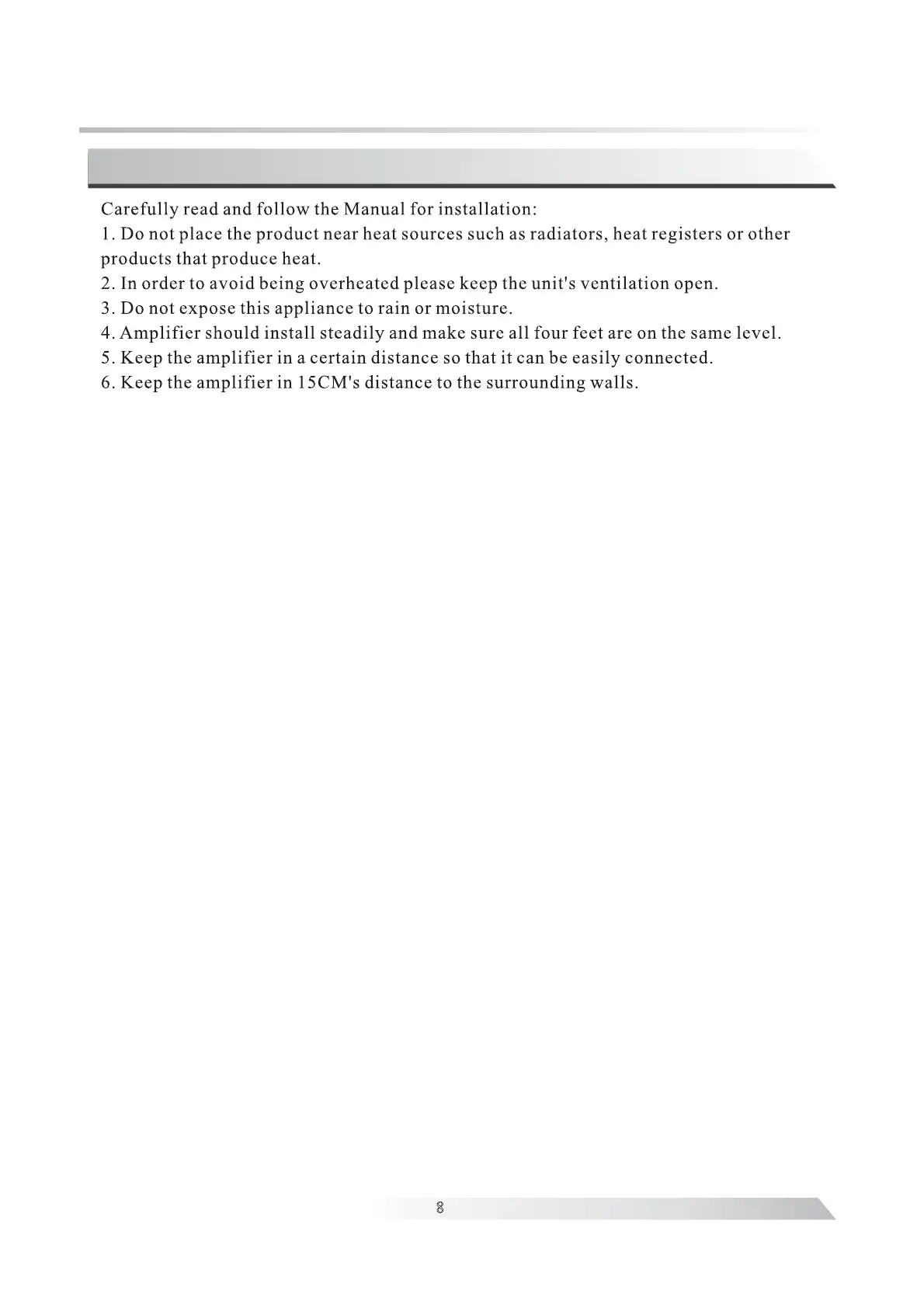 Input voltage level of the amplifier is 100V/120V/220V/240VAC~±5%. please make sure that the voltage is