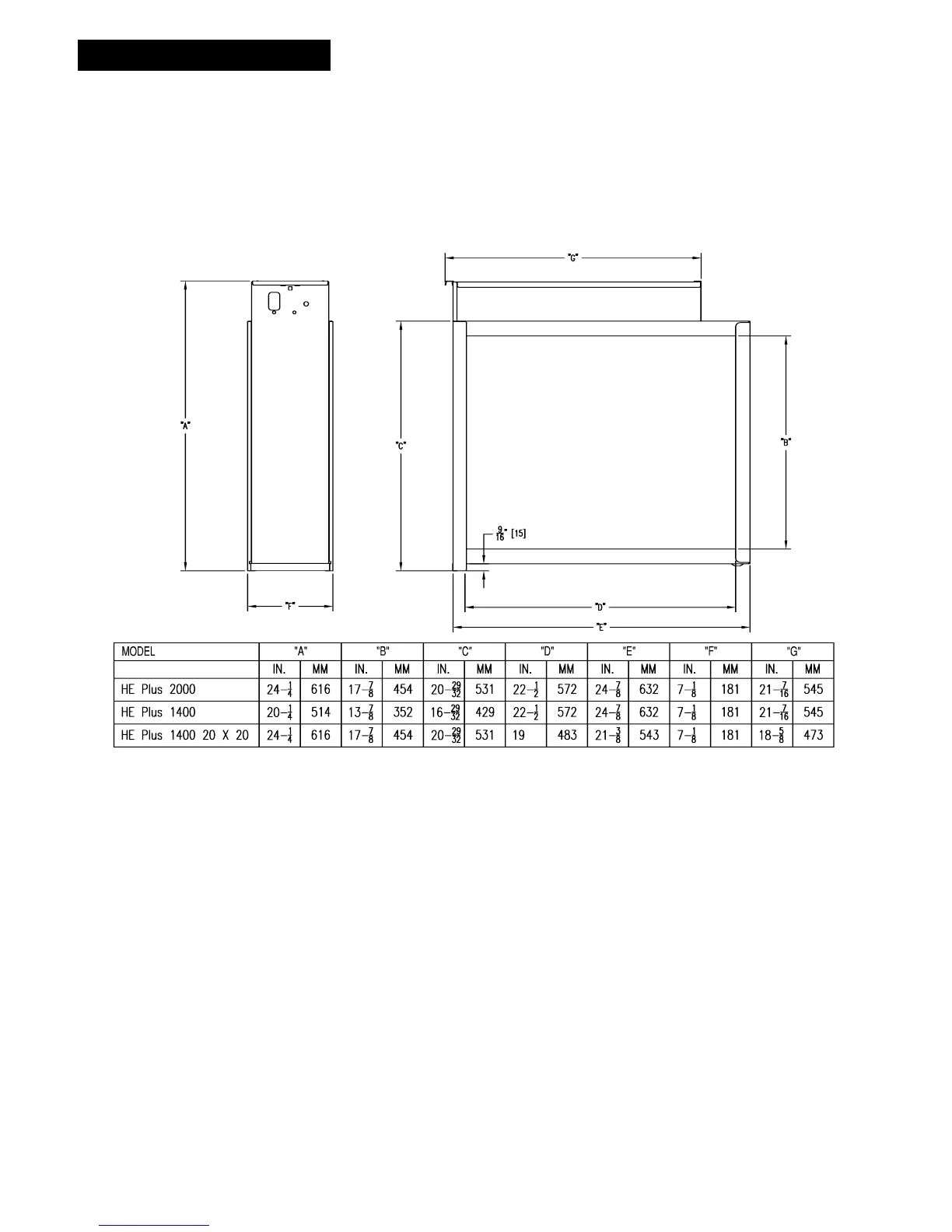 Trion HE Plus 1400 - Unit Dimensions; Dimensional Data Table