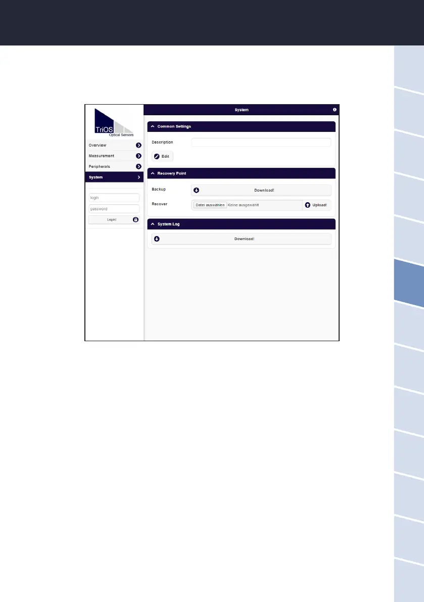 On the “System” page, a previously downloaded calibration can be restored or a calibration le created by the