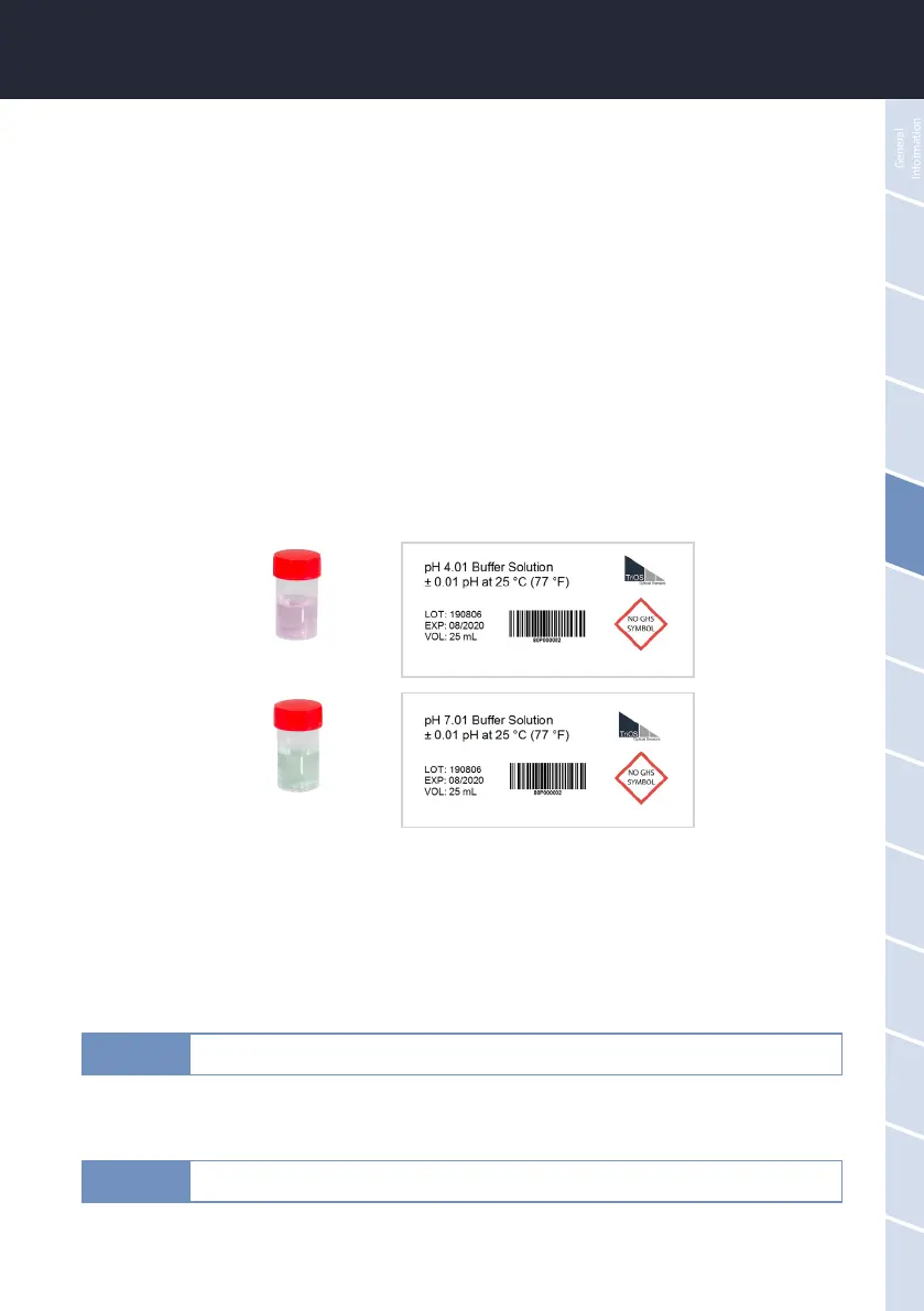 with an accuracy of +/- 0.01pH and observe the temperature. Fresh or newly prepared solutions must be used for each calibra-