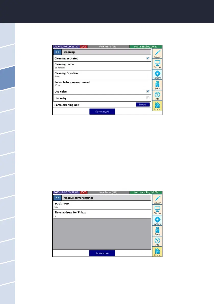 The subitem “Cleaning” allows the user to dene the cleaning intervals.