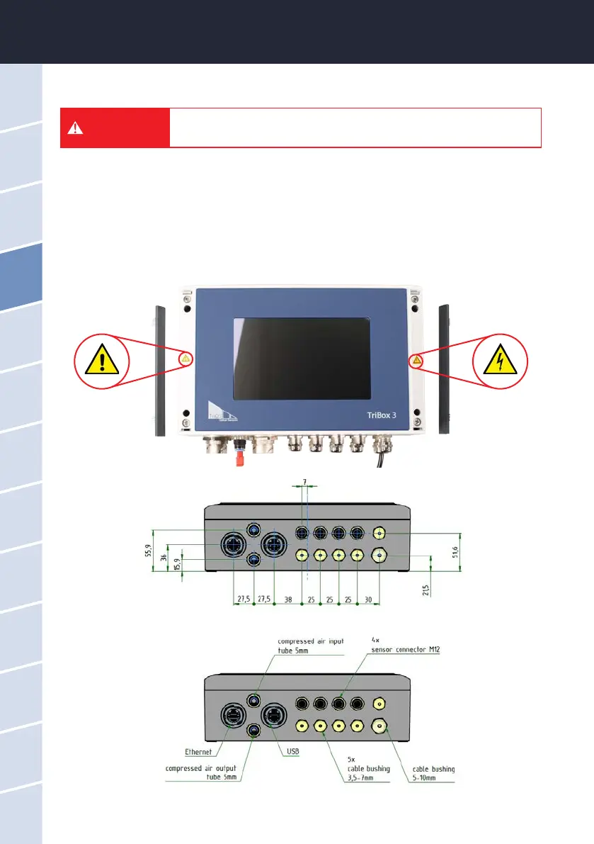 1. To mount the device, carefully remove the aluminium panels on both sides of the TriBox3 (see gure).