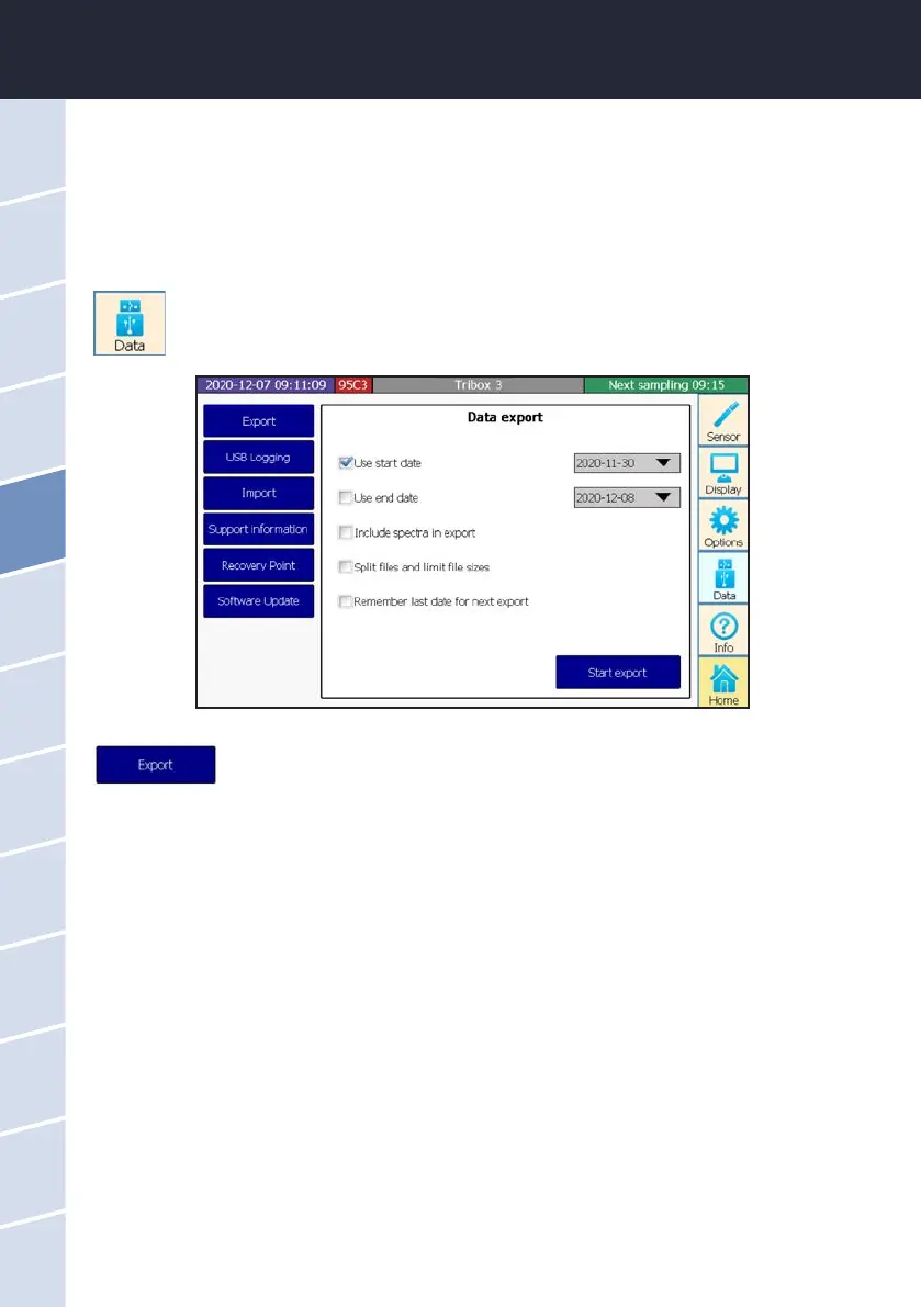 The subitem “Export” allows data and spectra to be copied from the TriBox3 to USB