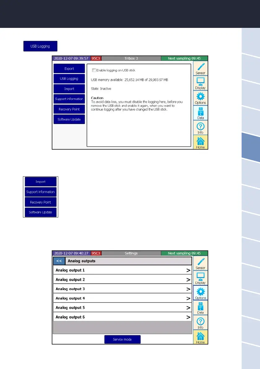 In the subitem “USB Logging”, you can activate the process whereby the data are