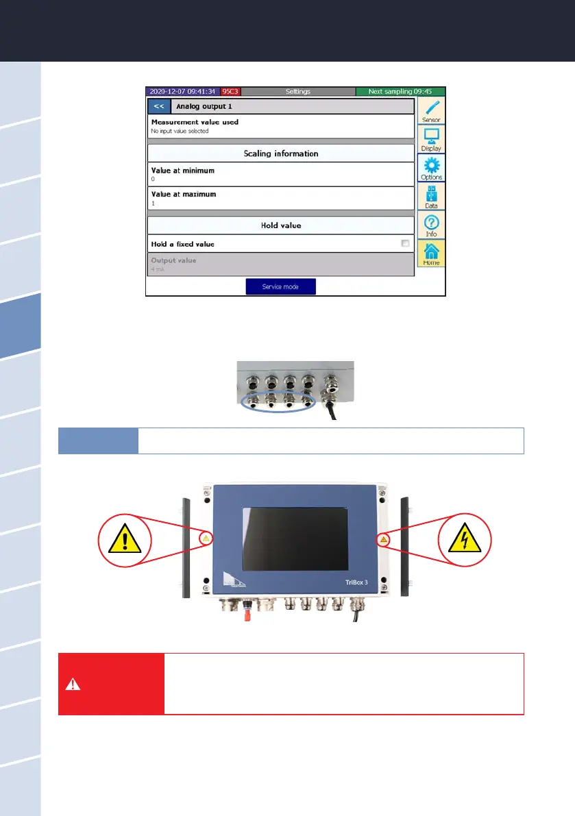 that no external voltage can enter. This could damage the TriBox3.