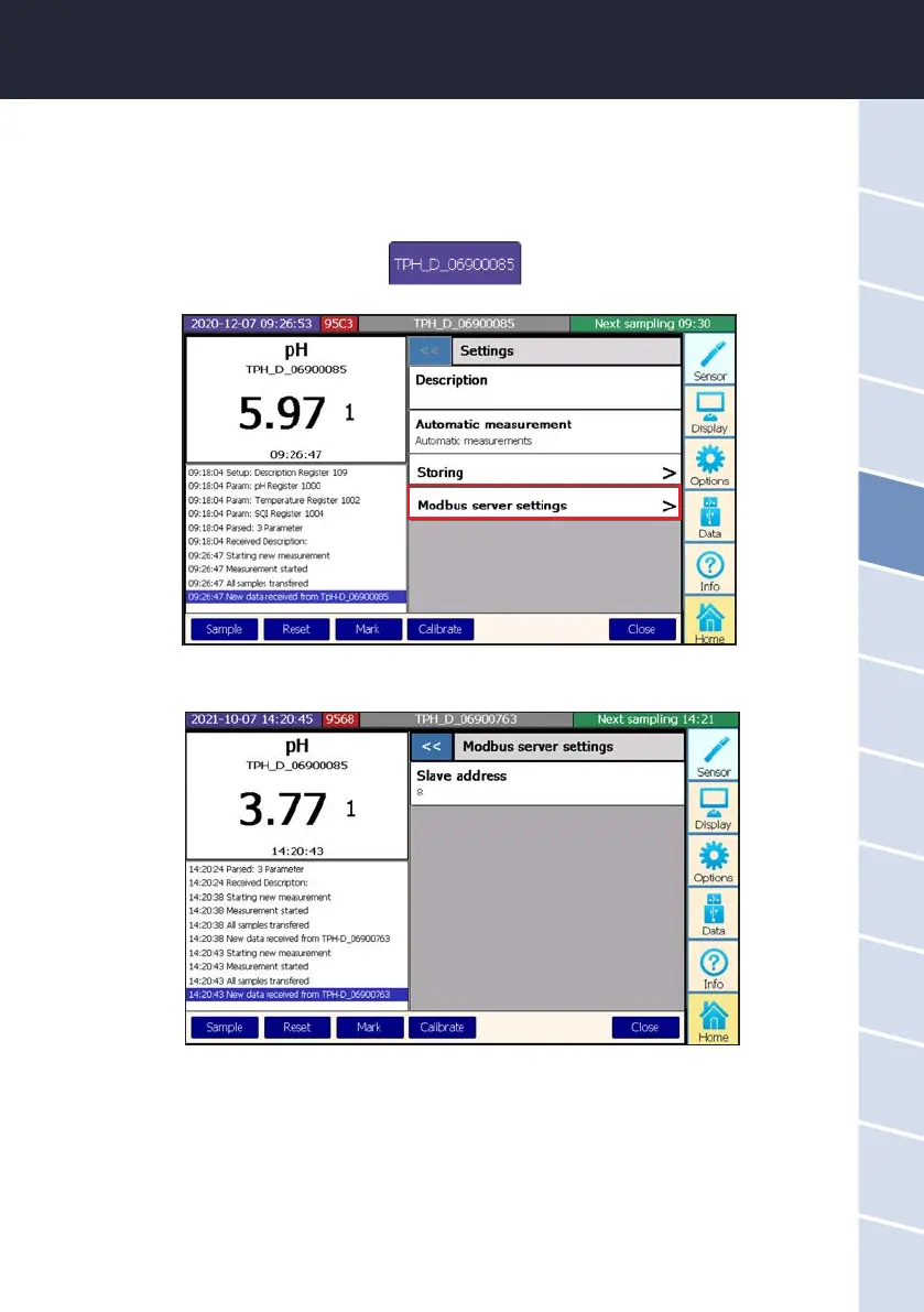 The slave address can be entered in the “Modbus server settings“.