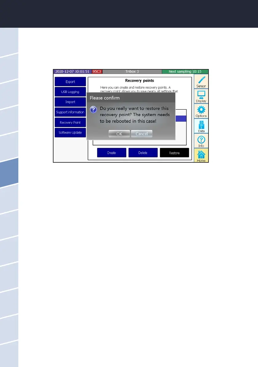 played as long as the USB stick is inserted in the TriBox3. When “Restore” is pressed, the following window